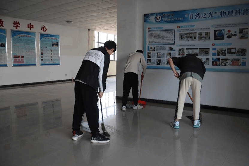 志愿者正在清扫理工楼