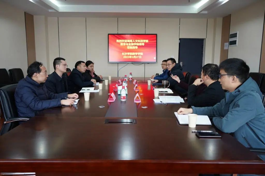 3月27日下午,湖南人文科技学院数学与金融学院院长李军成、副院长龙志文、教研室主任杨炼、史卫娟一行四人,为交流学习两校在学科建设方面的经验和做法,赴我校数学学院进行调研学习。