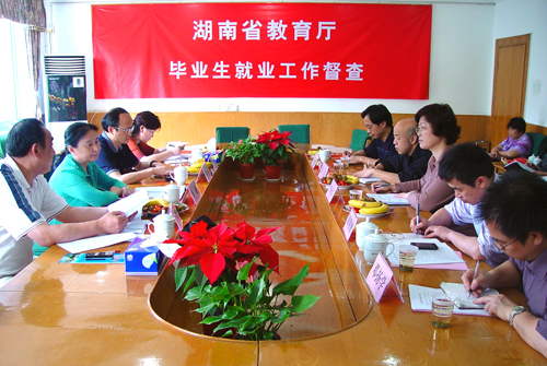 在省委常委、市委书记陈润儿来我校调研毕业生就业情况后,5月14 日上午,以省教育厅党组成员、主任督学李丽为组长,省人民政府督导室主任石灯明、中南大学就业指导中心主任刘金祥、长沙市教育局就业办主任成群芳为组员的湖南省教育厅高校毕业生就业工作督察组一行4人莅临我校督查毕业生就业工作。党委书记李咏芳、副院长宋达接待了督查组一行。