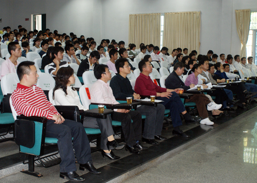 选手们的表现都十分精彩,既有热情洋溢的项目演讲,又有缜密活跃的思维分析。最后来自电子与通信工程系的谭海燕、陈昌友、谢双三位同学凭借《基于GSM网络SMS短信息功能的汽车防盗系统设计与开发》项目夺得一等奖,并将与获得二等奖的其它两支队伍共同参加长沙市第六届大学生科技创新创业大赛的角逐。