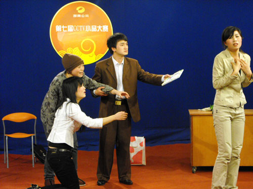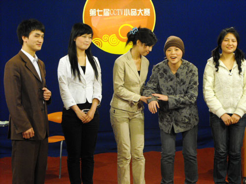 "好"!4月4日下午,省广电演播室内,小品《母亲》录制结束,工作人员纷纷对表演者竖起大拇指。表演者正是我校中文与新闻传播系07播音与主持专业学生张立翠、陈宏铁、张入尹、何艳艳、陈程五名学生。他们凭借《母亲》感人的情节和生动的表演获得湖南赛区前七强,成功挺进中央电视台第七届CCTV小品大赛复赛,并有望参与全国36强的角逐。