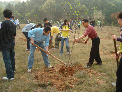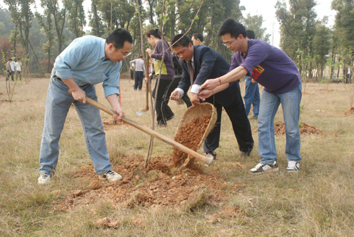 院长刘耘,校团委副书记余中华,土木工程系党总支书记张跃佳、主任唐依民,深业物业公司主任高明春与土木工程系06、07、08级600余名学生参加活动,齐心协力栽种下360棵腊梅树,为营造绿色长大播种希望。