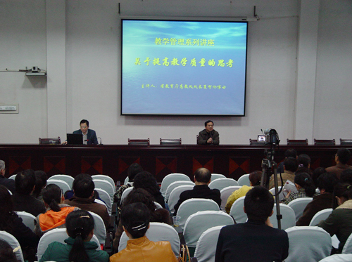 本次讲座由教务处主办。这是我校今年开展"教学管理系列讲座"的第一场。据教务处处长张世英介绍,今年将会举办5至8次有关教学管理的系列讲座,今后会邀请更多专家、学者为一线教师做讲座,切实推动我校教学改革和教育质量工程建设。