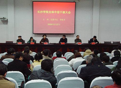 最后,党委书记李咏芳就如何落实学校2009年的工作重点、如何维护学校的稳定、如何做好大学生就业工作和加强思想政治教育作了重要指示,她强调各领导干部要尽职尽责,为学校的持续、快速、健康发展作出自己应有的贡献。