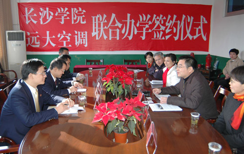12月25日下午,我校与远大空调集团在办公楼三会议室举行了联合办学的签约仪式,强强联手,打造培养应用型人才的摇篮。这是我校与中联重科、山河智能等知名企业成功进行联合办学之后,第三次与企业联姻,采用订单式方式培养学生,也是远大空调集团首次和本科院校联合培养技术人才,这标志着我校校企联合办学又迈出了新的一步。