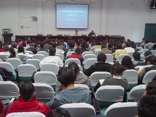 12月5日,由湖南省高级人民法院研究室副主任谭辉雄博士主讲的"超越自我,诠释人生"讲座在科技楼学术报告厅顺利举行。校党委书记李咏芳,副书记、副院长李云龙,民革湖南省委秘书长黄自荣,民革长沙市专职副主委、长沙市人大常委会委员贺绍佩,民革长沙市委员会秘书长兼青年工作委员会主任康镇麟,以及民革市委机关相关处室的负责人等听取了讲座。讲座由法学与公共管理系副主任张胜先主持。