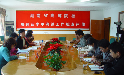 11月24日上午,由湖南省语委普通话培训测试中心副主任高广安一行五人组成的专家评估组在办公楼二会议室对我校普通话水平测试工作进行了检查评估。这是十年来我省第一次最大规模的专项工作检查,省内54所高校普通话测试站将迎接检查评估。