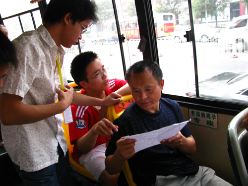 9月l6日,上午7:30,我校第一批450名志愿者在湖南巴士和龙骧巴士公司近40条路线的800多台公交车上开展了文明劝导工作,揭开了我校"参与长沙市文明劝导志愿者"活动的序幕,本次活动为期三天,共1350名志愿者分三个批次进行文明劝导的工作。