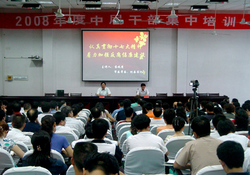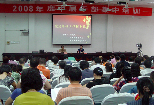 为进一步解放思想,增强廉洁从政意识、加强干部队伍廉政建设,提高做好迎接本科教学水平评估和即将进行的党建评估工作的思想认识, 7月10、11日,我校在科技楼学术报告厅举行了为期两天的集中学习和讨论,这是我校中层干部继2007年暑期集中培训之后的又一次大规模集中学习。本次集中学习形式生动,内容丰富,针对性强。省委宣传部巡视员、省社科联主席、长沙学院客座教授郑佳明,省政府督导专员、长沙医学院党委书记陈建民,市委常委、纪委书记袁观清分别从《十七大主题与解放思想》、《党建评估工作》、《认真贯彻十七大精神 着力加强反腐倡廉建设》三个专题进行针对性辅导。集中培训采取报告会和自学相结合的方式进行,校领导李咏芳、李云龙、钟惠英、宋达、邓球柏、雍正海,全体处科级干部,各基层党总支、支部委员会全体成员参与了学习。