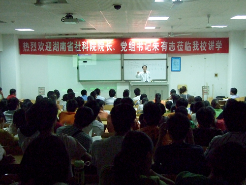 4月28日晚上,湖南省社科院院长、党组书记朱有志教授应学校科技处之邀,为我校师生做了一场精彩的学术报告。