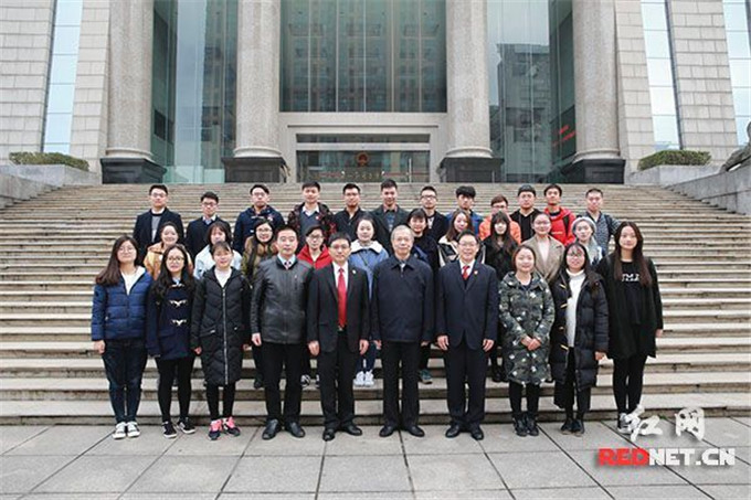 湖南高院党委组书记、院长康为民(前排右五)与长沙学院法学院师生合影