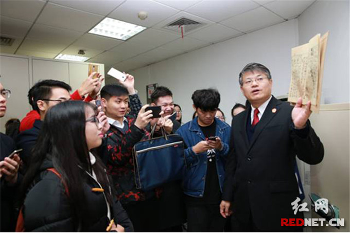 湖南省高院工作人员引领学生们参观档案室