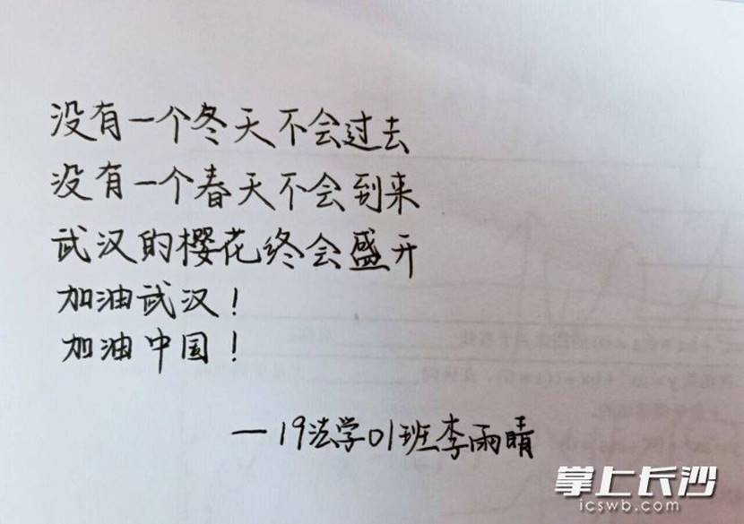 “待春暖花开之时,我们都可以走向街头,不用口罩,繁花与共。武汉加油,湖北加油,中国加油!”除了学习,法学院组织学生开展手写加油接力活动,通过抖音声援疫情阻击战;土木工程学院开展的“全民战‘疫’,土木有爱”活动,倡导学生与家长开展亲子互动活动、凝聚家庭力量,在家的亲情与温暖中阻击疫情;机电学院筹划开展“防控疫情,机电一心”线上专题教育活动,以“一段视频表关心,一封家书传真情,一份承诺显担当,一个计划谱未来”的活动内容引导学生心系民情、社情、国情,以实际行动抗击疫情;电信学院发起的“携手东来·‘阁’除病毒”短视频大赛,通过拍摄短视频讲述抗疫故事、宣传抗疫知识、致敬抗疫逆行者等,号召大家携手共克时艰。