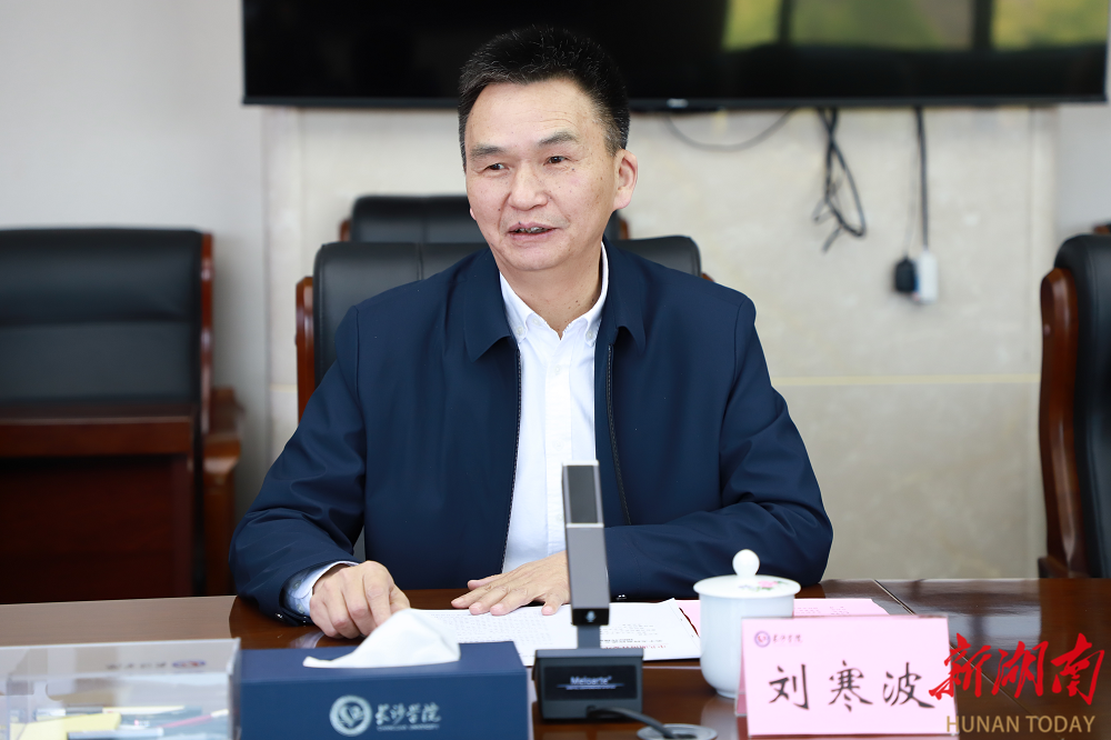 刘寒波对邱爱华一行的到来表示热烈欢迎,并简要介绍了长沙学院基本情况和办学成果。