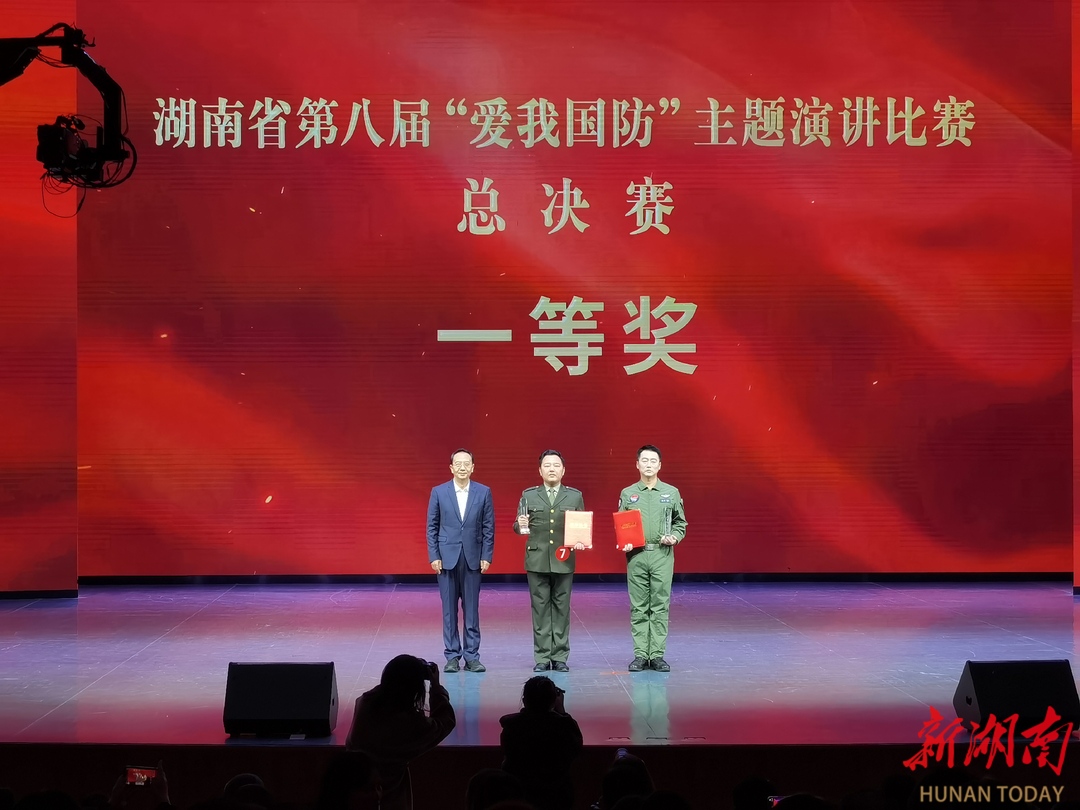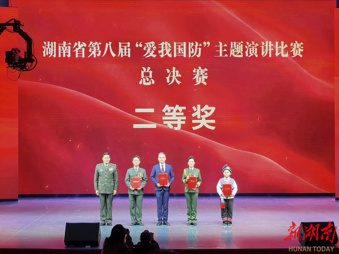 “只有建设强大的国防,才能守卫家园的安康”“从陆军,到消防,再到人民武装部,戎装虽换、军魂永驻”……现场金句连连,气氛热烈。经过激烈比拼,胡锦文和焦夕芮、郑熙湲、易延芳团队分别以《做“忠孝两全”的中华好儿女》和《抉择》主题演讲荣获一等奖。朱龙波,全玉麒、潘婷等4组选手荣获二等奖。陶冰蓝,彭兴歆、黄昊洋、王伟阳等6组选手荣获三等奖。现场还颁发了一批湖南省第八届“爱我国防”主题演讲比赛优秀组织奖。下一步,优秀选手将走进部分市州、驻湘部队开展巡回演讲。