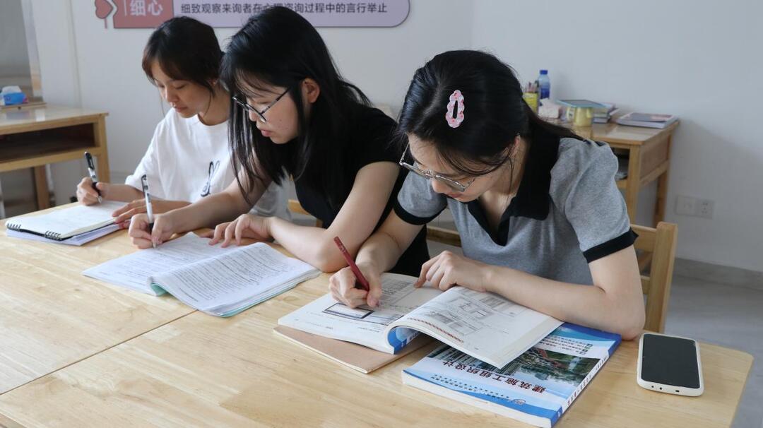 进入大三择业就业期,三人考量了自身的专业特点、个人兴趣以及职业规划,不谋而合地选择报考同一所学校同一个专业的研究生。可国赛与考研“撞期”,“铁三角”姐妹花毫不犹豫地选择了“双线作战”。她们精准切割时间,图书馆的闭馆铃与排球场的大厅灯见证了她们来往穿梭的身影。她们把球场上的战术配合思维运用到考场上的解题思路中,最终如愿以偿。