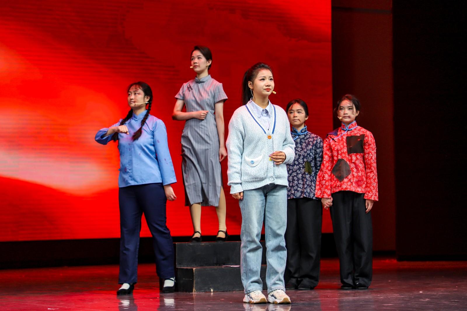 此外,三名青年大学生声情并茂地演绎了原创朗诵节目《蜕变》,讲述了一位来自贫困山区的十四岁小女孩在党和国家的帮助下人生发生重大变化的故事,传递出不屈不挠、勇往直前的精神力量。