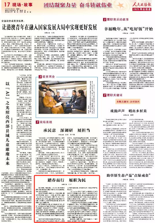 他们的履职日志里,有田间地头的“泥土芬芳”,有实验室、生产间的“科创脉动”,有诊室病房的“民生温度”,有生态保护与人文传承的“立体维度”,有民族团结一家亲的“深情厚谊”……委员们提出的建议,部分被相关部门吸纳转化,成为政策条文,落实落地,山林河湖间跃动着调研成果转化的春潮。