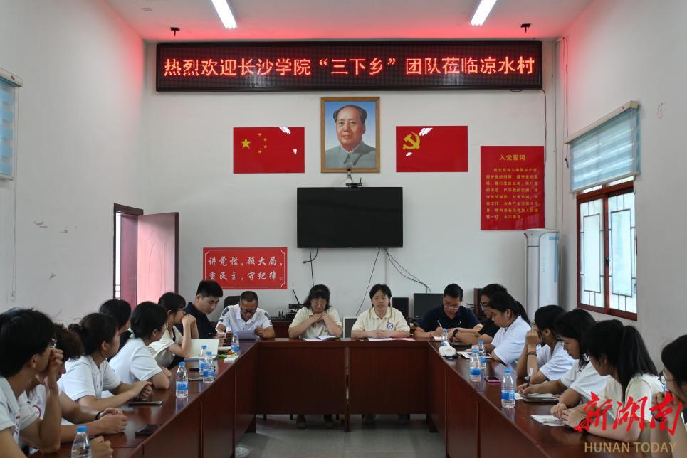 实践团与凉水村支部书记及长沙学院驻村乡村振兴工作队开展座谈会