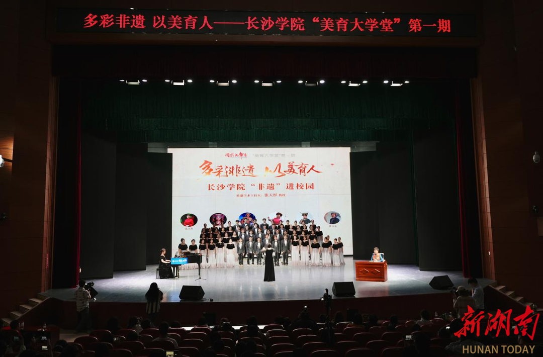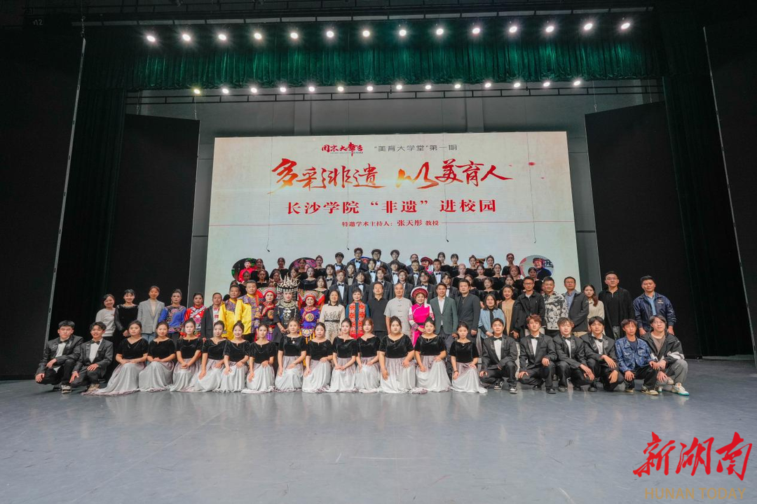 11月8日晚,长沙学院首期“美育大学堂”活动——“多彩非遗 以美育人”非遗进校园展演活动在该校学生活动中心举行。湖南省非遗保护中心副主任胡敏、长沙市非遗保护中心主任龙耀华与800余名师生参与活动。