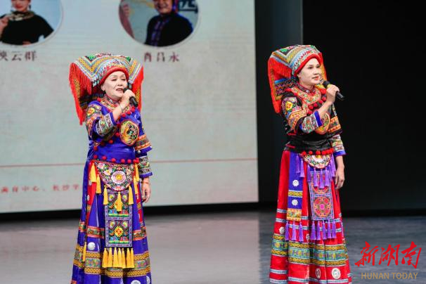 国家级传承人赵庚妹与其徒弟李仁萍用歌声唱述了瑶族先祖盘王漂洋过海的历史以及崇尚美善的精神内核;酉水号子传承人向上以其湘西男儿特有的磁性嗓音,演唱了沅陵船工号子、盘木号子和车水号子,讲述了三种号子产生的土壤及背后的故事,并带领现场观众共同演绎了号子“一领众合”的演唱形式,让观众“身临其境”地领略了船工行船过程中团结奋进、排除万难的气魄和勇气。