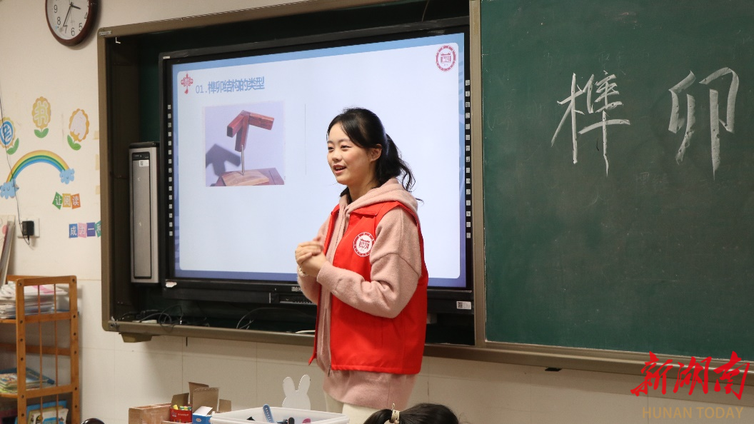 (△志愿者在金鹰小学进行“小小建筑家”之弘扬传统建筑知识的课堂服务)