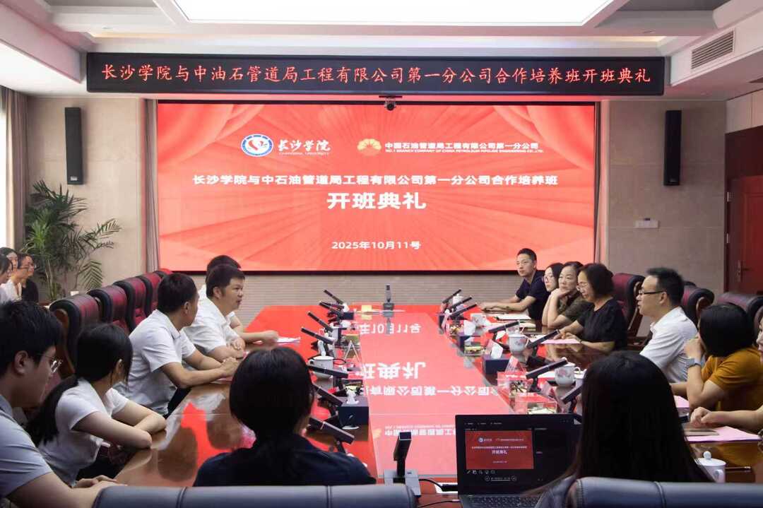 当管道工程项目管理、国际HSE标准、全自动焊接技术等课程,成为外语及相关专业学生课表上的核心内容时,一场深刻的人才培养模式变革正在长沙学院发生。近日,该校与中石油管道局工程有限公司第一分公司(以下简称“管道局一公司”)共建的产教融合培养班完成首期教学。28名2026届应届毕业生正在经历一场从“学外语”到“懂工程”的淬炼,即将奔赴“一带一路”沿线,成为中国能源基础设施建设海外一线的青春力量。