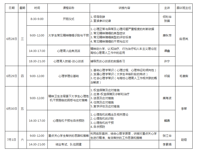 为认真贯彻落实教育部等十七部门关于印发《全面加强和改进新时代学生心理健康工作专项行动计划(2023-2025)》的通知精神,加强我校学工队伍心理理论知识学习,进一步提升学工队伍心理育人工作技能,更科学有效地开展心理健康教育工作。经研究,我校特举办2023年心理育人工作技能专项训练营,现将有关事宜通知如下。