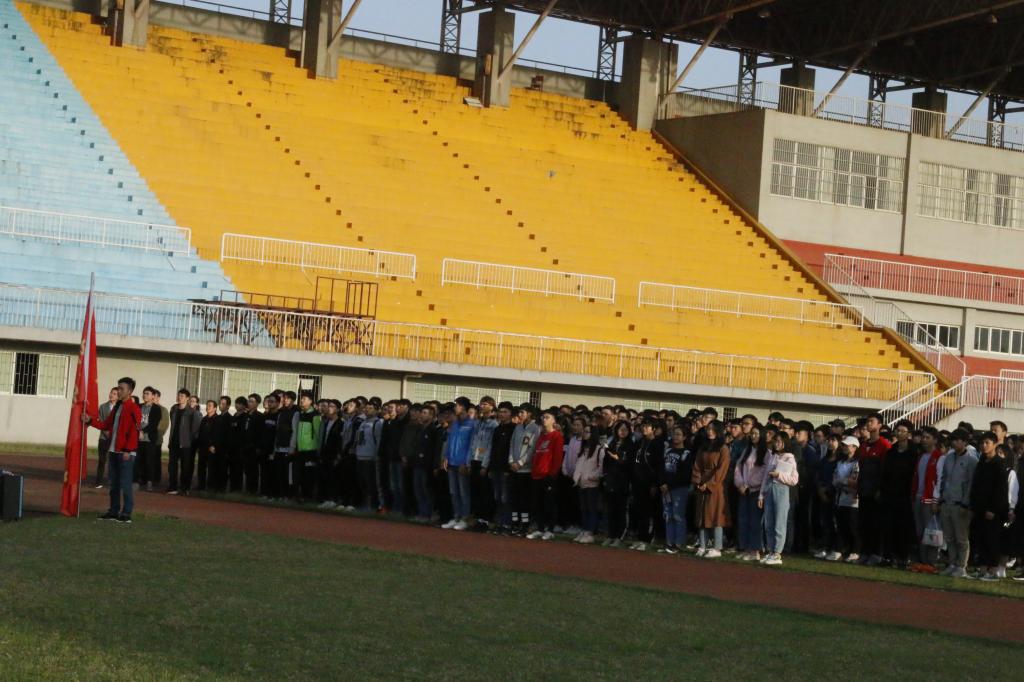 2018年4月9日7:00,长沙学院计算机工程与应用数学学院升国旗仪式暨国旗下的演讲活动在天健体育场隆重举行,计数学院党总支书记彭向阳、党总支副书记王芳,学科带头人李方敏教授,全体辅导员出席,全院在校一千八百余名同学参加仪式。
