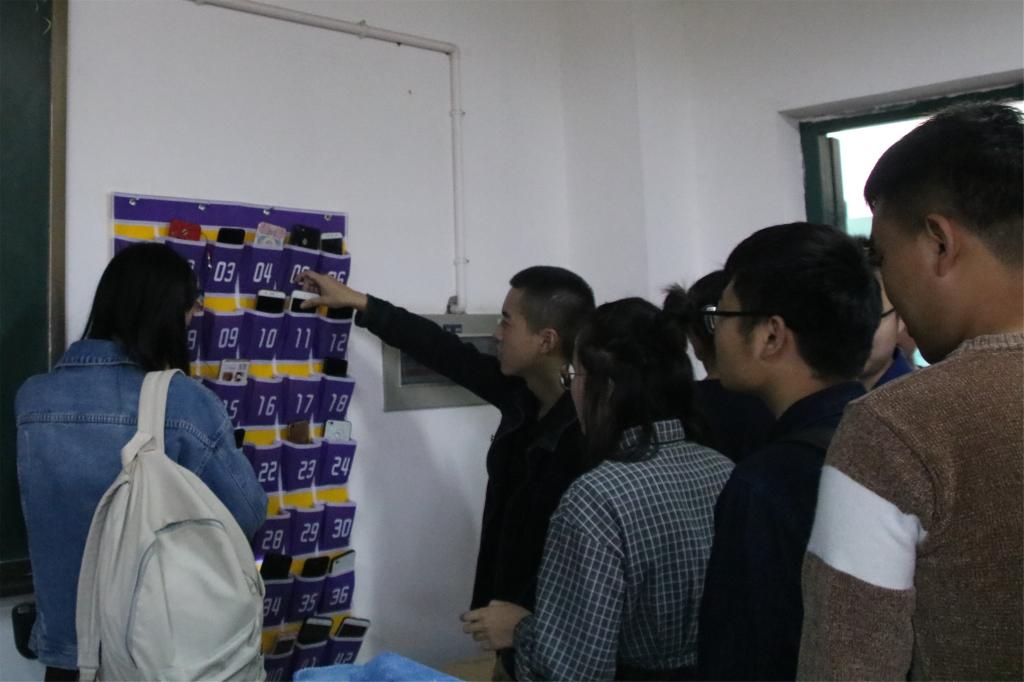 2018年3月以来,长沙学院土木工程学院团总支、学生会开展了一系列 “无手机课堂”学风建设活动:一是线上与线下宣传教育,通过“筑梦土建”微信平台,以及在各教学楼栋分发倡议书,以营造“无手机课堂”的文化氛围。二是班级召开“拒绝手机,聚焦课堂”的主题班会,学生干部带头签订责任书,保证将活动做细做实。三是在学院65间教室里悬挂了紫色的手机收纳袋,每个教室挂一个或者两个手机袋,能分别收纳42部或84部手机,并在手机袋的上方印制了温馨的标语。四是在学院教师大会上通报了此项举措,要求老师负有带头和提醒的责任。通过这一系列的举措,土木工程学院“无手机课堂”的理念得到了落地生根,带动了全院学生全身心的投入到课堂学习中,使课堂由原来的“短信声,QQ声,游戏声,声声不息”再次回归到“风声,雨声,读书声,声声入耳”。受访学生中大多数都认为:上课前将手机集中收纳这是个好事情,现在很多年轻人都已经完全离不开手机,上课也在玩,这种活动开展的好,可以让我们更专注于课堂。