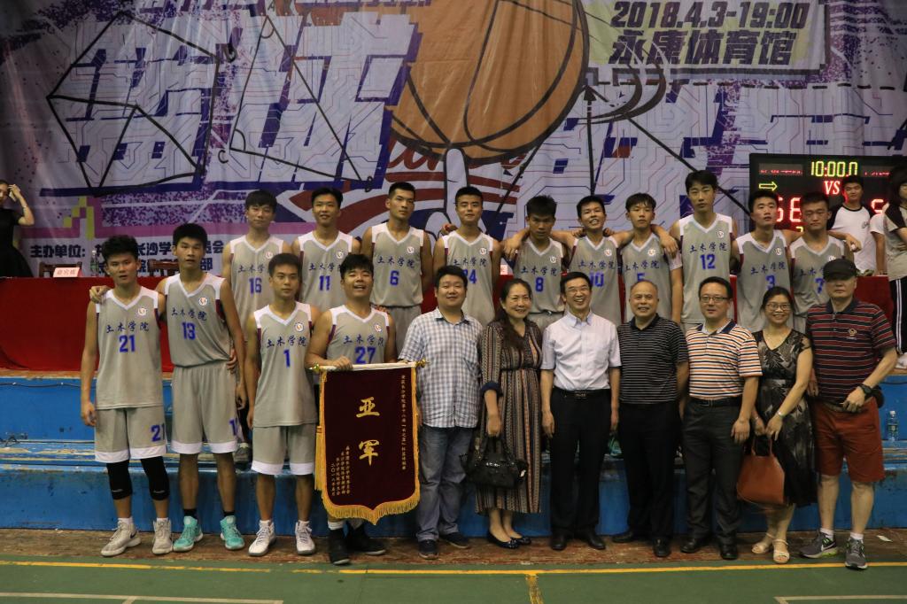 2018年5月15日晚7点,长沙学院第十八届“云之翼杯”校篮球联赛决赛在永康体育馆一楼拉开序幕,土木工程学院与计数学院进行了冠亚军争夺赛。学院党总支书记张跃佳,院长谢立辉,副书记盛旺、副院长肖婧、辅导员李晗、余潇以及学生代表到场为我院篮球队加油助威。