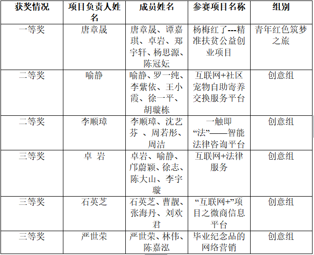 经上轮选拔,我院共有13个项目组晋级本次选拔赛。本次比赛分为展示和答辩两个环节。选手们激情饱满,准备充足,对创业构思进行了充分阐述。其中,唐章晟组的“杨梅红了——精准扶贫公益创业项目”项目,响应国家号召,通过网络志愿者联盟的销售平台,联合各社会组织力量,采用公益与商业相结合的方式,利用“电商+法律服务”精准扶贫振兴乡村经济。“互联网+”社区宠物自助寄养交换服务平台与一触即“法”——智能法律咨询平台两个项目以其独特的创意得到了评委们的认同。
