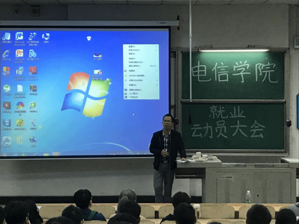 10月9日晚7点,电信学院就业动员大会在涵虚楼C多4顺利举行。电信学院党总支副书记胡小毅、2015级辅导员谭宏政出席动员会。本次大会邀请云思科技讲师邢玫做就业专题辅导。