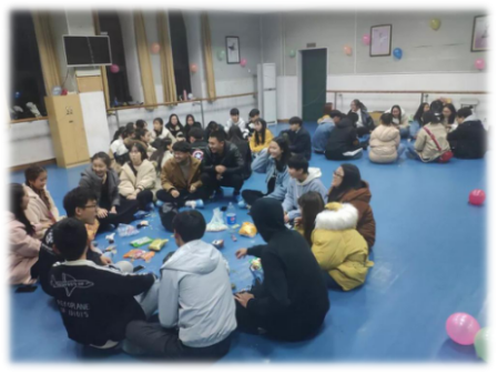 活动开始由主持人介绍活动背景与目的以及到场的各部部长,并提出本次活动的纪律要求,在18级学生会干事才艺展示中拉开帷幕。秘书处干事王明龙热情演绎《赛马》,旋律表演一气呵成,引得大家阵阵掌声,干事张晓莹弹奏《土耳其进行曲》,活泼可爱的节奏不由得使同学们跟着律动起来。在接下来的游戏中,“记名字”游戏需记住每个组员的名字和部门,不知不觉间增加了同学们之间的熟悉程度与默契配合度。“007”接龙游戏,考验了同学们的反应速度,游戏被同学们的欢笑与嬉闹所贯注,整个活动渐渐热络起来。按指定人数的“抱团”游戏,将活动推向高潮,每个人脸上都洋溢着欢乐。游戏结束,进行本场最激动人心的时刻——同生会!由主持人介绍庆生同学并组织大家合唱生日快乐歌,在吃蛋糕中走向活动的尾声。