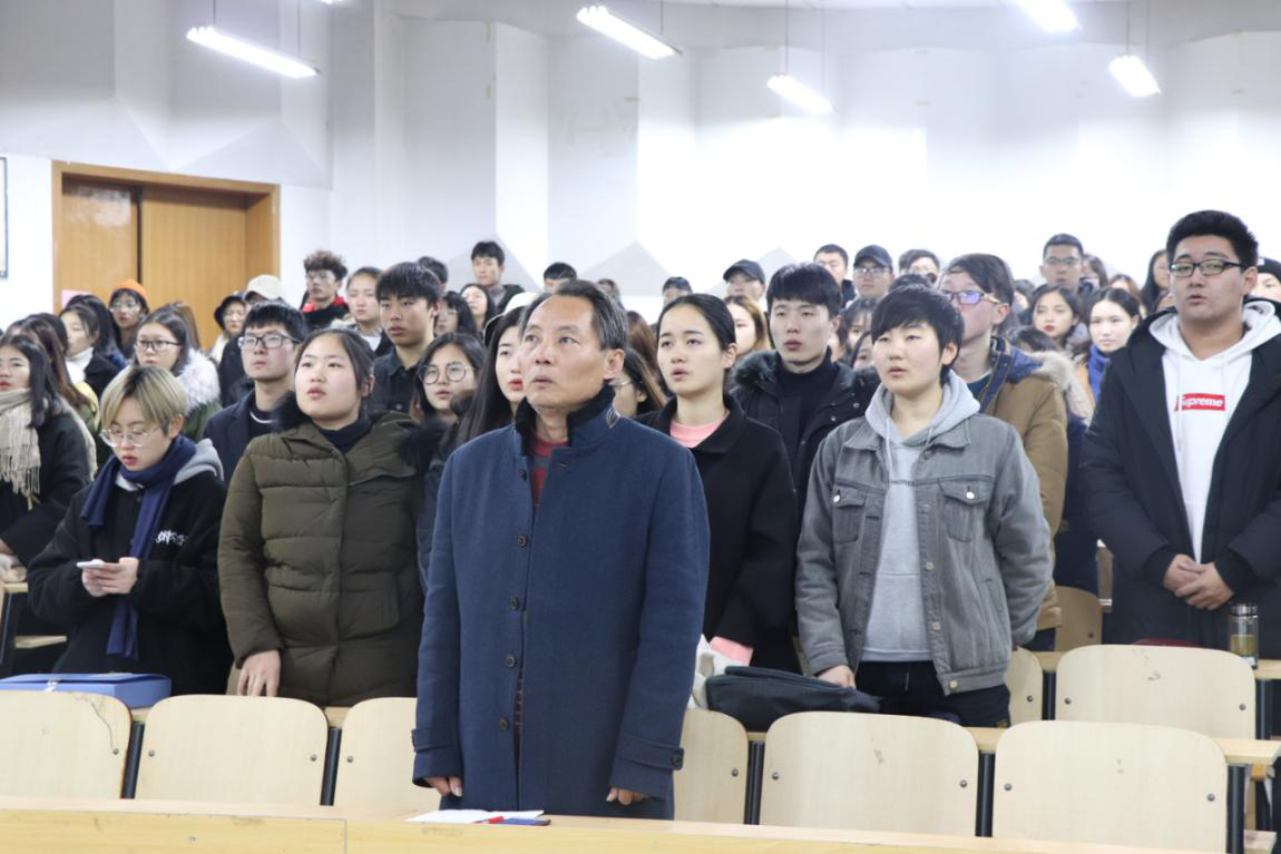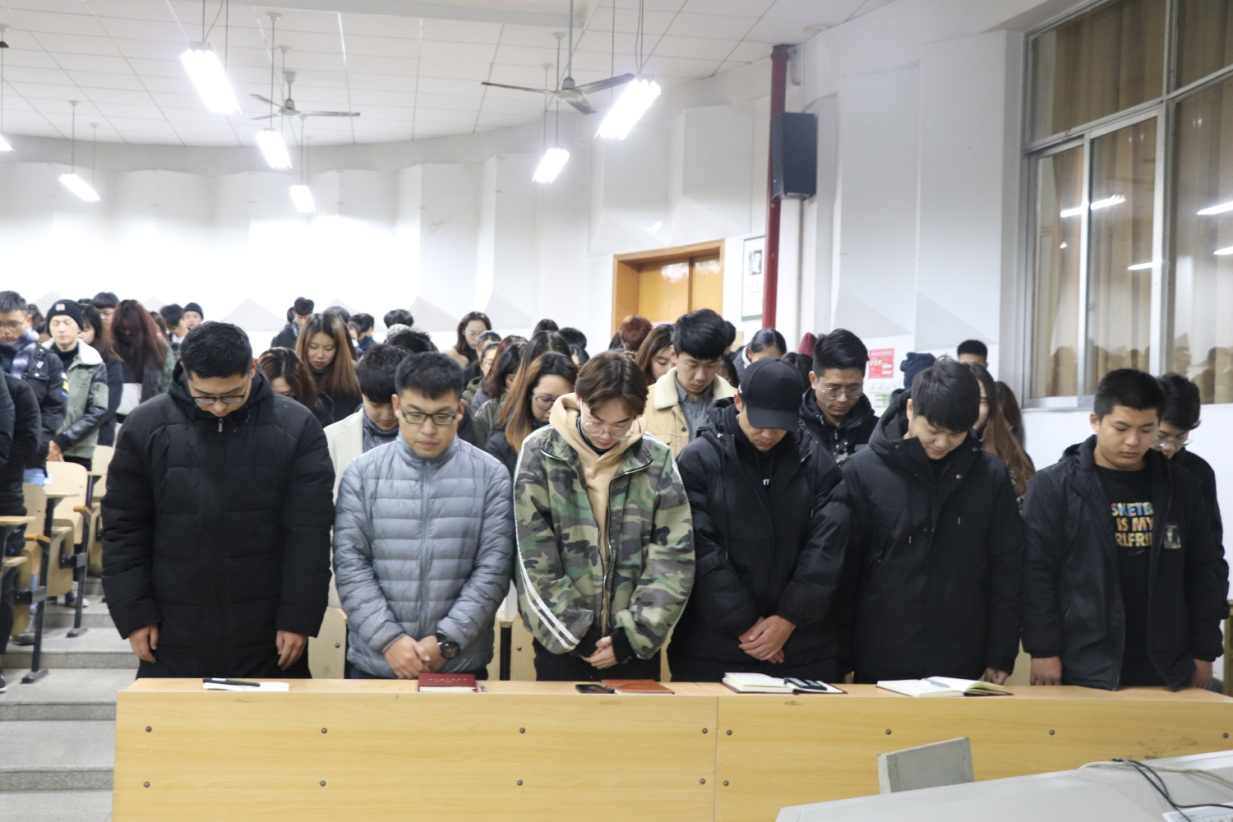 观影活动前全体学生党员、入党积极分子为南京大屠杀中的所有受难者默哀。随后,艺术设计学院党总支副书记黄慧瑾上台讲话:“12月13日是南京大屠杀死难者国家公祭日,希望在座各位铭记历史,反思历史,落后就要挨打,大家应珍惜现在来之不易的和平时光。”