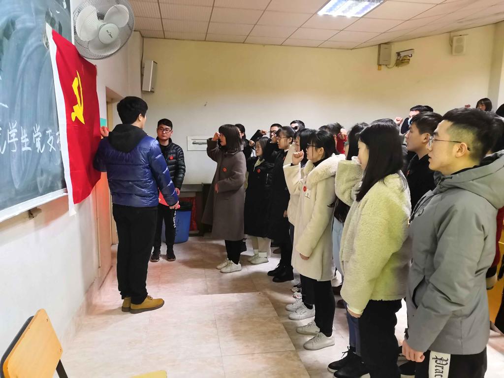 会议的最后,在正式党员周素华同学的领誓下,上学期新发展的党员宣读入党誓词,党旗指引方向,誓言凝聚人心,在这个奋进的梦时代,青春就是引擎,梦想就是力量,青春永不懈怠,新学期更奋进,计数学院永远在路上。