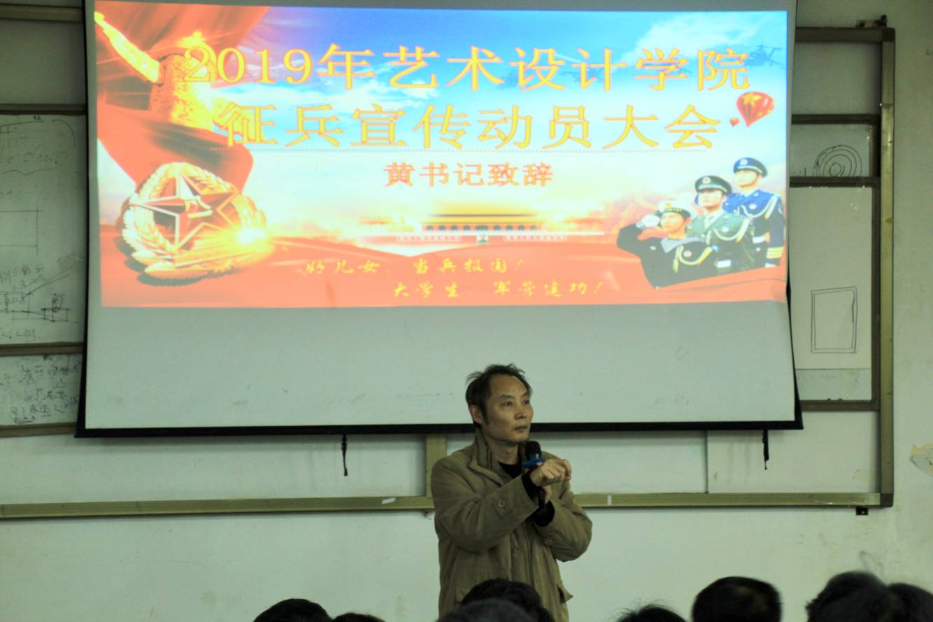 大会上,艺术设计学院党总支副书记黄慧瑾老师发示,参军入伍是每一名适龄公民的法定义务和光荣使命,大学生军营建功,好男儿心系家国。习近平总书记也曾讲过,要让军人成为人们都崇尚的职业。鼓励有志青年前往部队的大熔炉锤炼,争取成为一名光荣的中国人民解放军战士、武警战士。他还介绍了相关征兵政策,响应国家的号召。