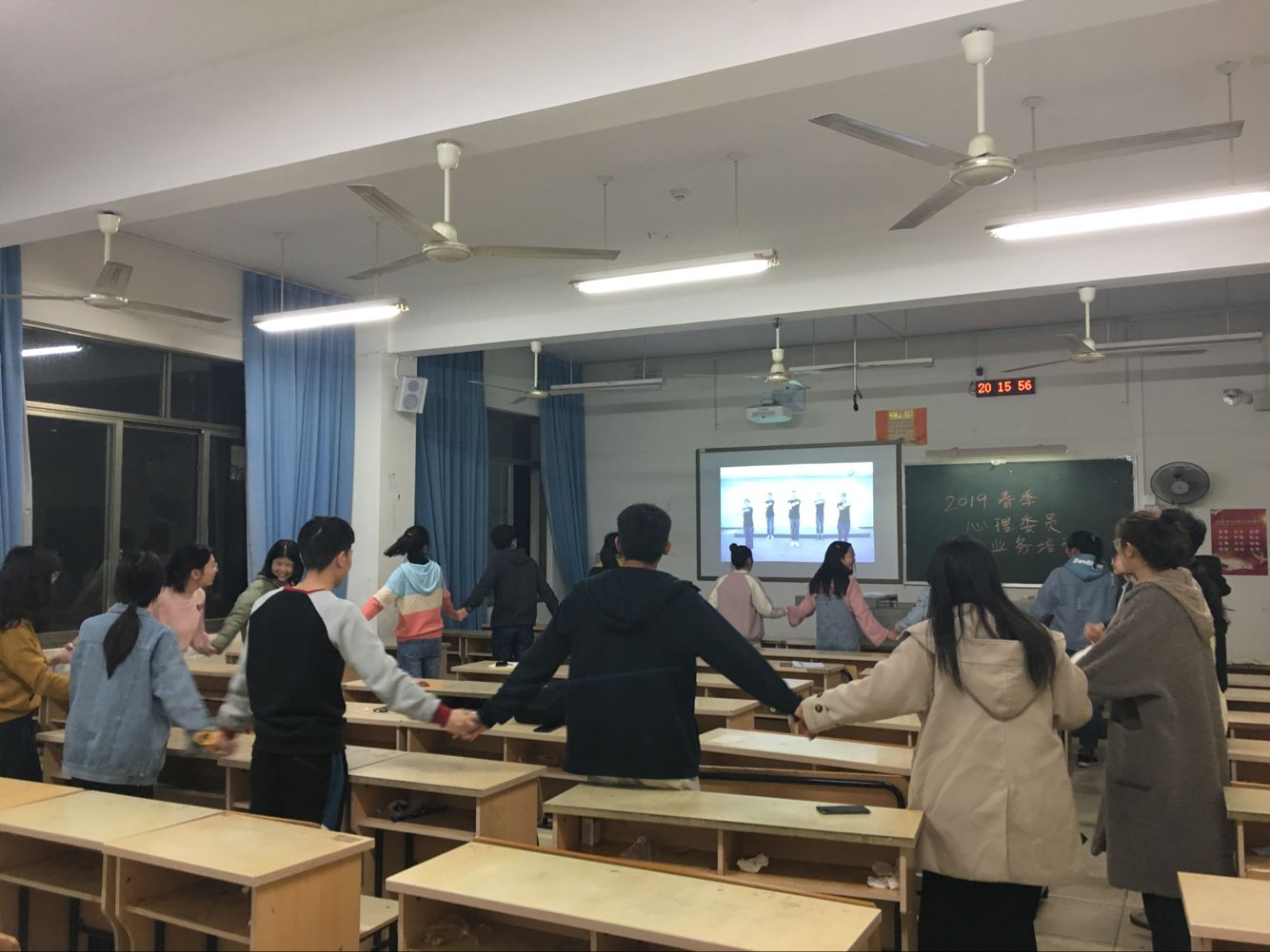 培训伊始,周老师首先抛出了一个问题:“如果你要去一个荒原待20年,你会选择一个人去,还是带一个仇人去?”以此切入培训主题,引发同学们积极讨论,现场气氛极佳。周老师分别从团体心理辅导概述、团体心理辅导的组织实施、团体辅导的方法和技术这三个方面展开培训。其中着重指出团体辅导对成员的好处,比如:利他主义(成员间有机会互相学习、获益)、提高社交技巧、行为模仿(成员间潜移默化的模仿对方的行为,进而逐步改掉不良行为)等等。接着,周老师详细地讲述了团体活动实施步骤,以便各个心理委员更好地开展班级活动。周老师指出,在开展团体辅导过程中要注意不能泄露个人的隐私信息,以免造成当事人的不便,团体辅导不是适合每一位同学,不能强求他人参加。培训最后,周老师组织每个心理委员学习《相亲相爱一家人》这一歌曲的手语。通过培训,拉近了同学们的距离,心理委员们纷纷表示,通过本次培训加深了对团体辅导的认识与了解,在今后的工作中将会运用所学更好地组织班级活动。