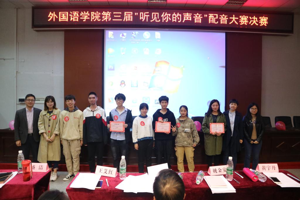 本次比赛面向我校全体学生举办。经过前期初选,共有八支队伍进入决赛,决赛分为两个环节,第一环节由各组对自己所选的影视片段进行配音;第二环节为“我声我配”,此环节中,选手对自己所抽取的视频进行台词改编,在原有的剧情基础上进行二次创作。