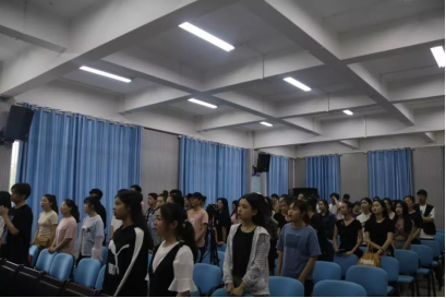 首先,全体同学起立齐唱《光荣啊,中国共青团》,团员代表欧阳雨霜等4位同学领学习近平总书记五四讲话,运用新思想争做新时代的新青年。紧接着,学生代表粟玉等4位同学引导大家学习《长沙学院章程》中考试相关制度,并带领全体起立宣誓,作出承诺,认真复习,诚信应考。