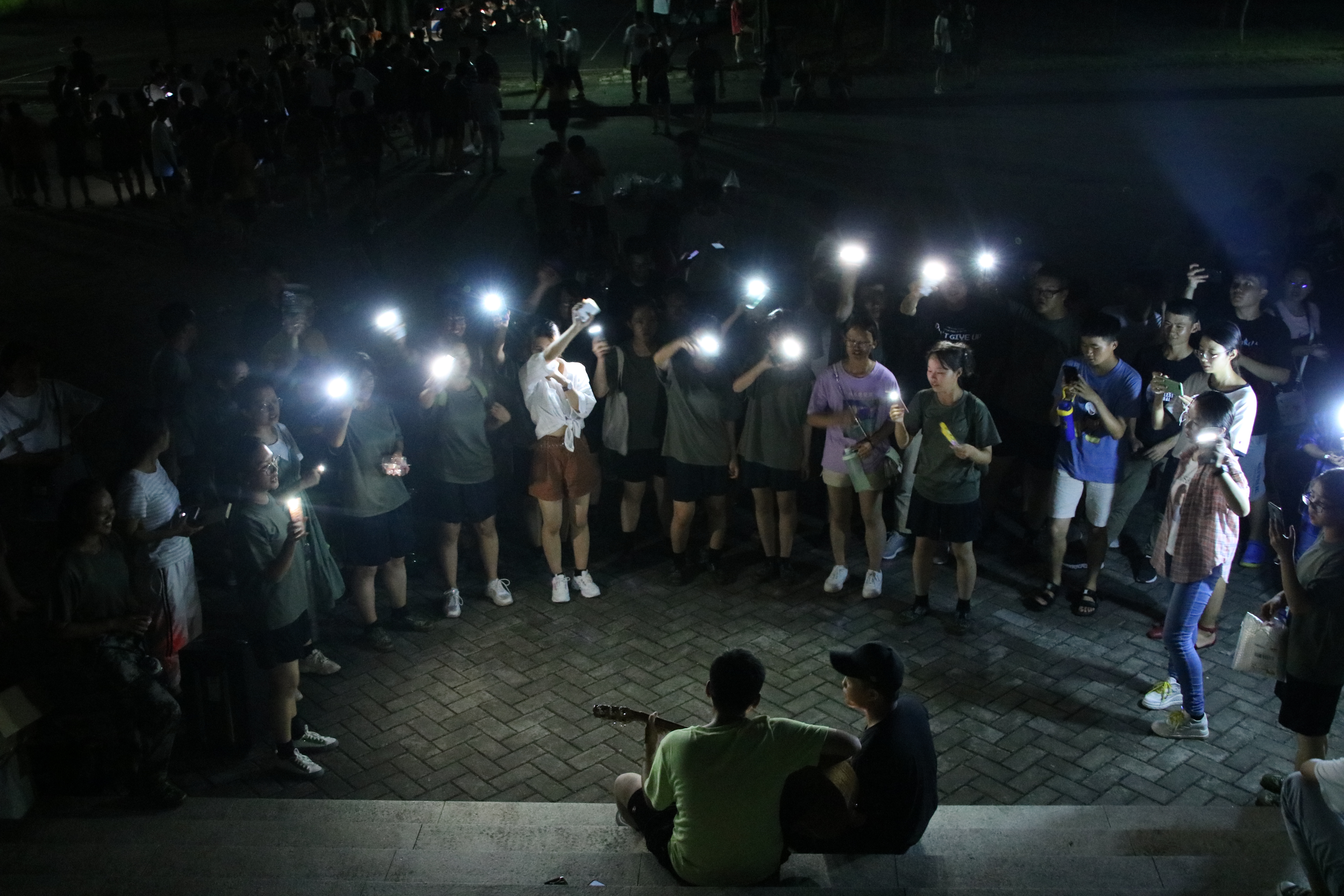 晚上19点,和平时的军训一样,土木学院各连队准时到达训练场地,他们围坐在一起,欢声笑语,品尝着学院分发的月饼,望着天空中的明月,唱着铿锵有力的军歌,与教官、老师、同学们亲切的交流着、沟通着,感受着土木大家庭的温暖。