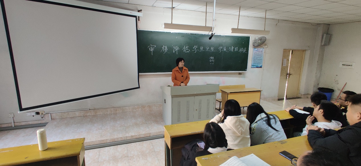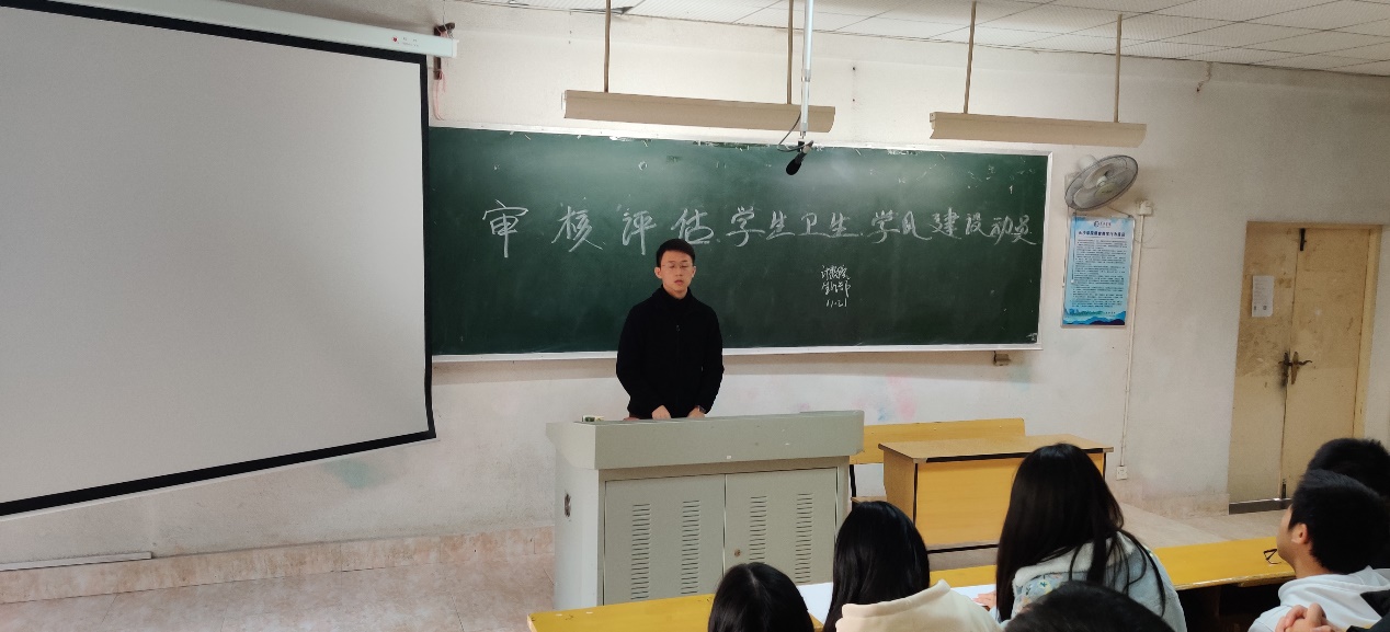 廖良梅副书记在讲话中指出,审核评估是学校申硕的一次重大考验,也是关乎发展大局的重要契机,一是要统一思想,确保认识到位,审核评估着眼当前,涉及长远,评估结果的好坏直接影响到学校的社会声誉、人才培养、发展空间以及全校师生的切身需求。二是要搞清内涵,确保理解到位,作为计数学子要以此为契机抓好寝室常规管理,提升爱校爱寝的集体荣誉感,展现“计数文化人”的优良风貌,三是要把握关键,确保落实到位,寝室长和生活委员实行分包责任制,共同营造干净有序的寝风、院风、学风,用实际行动投身到迎评促建之中来。随后辅导员陈昊老师就寝室职责要求进行了具体说明。
