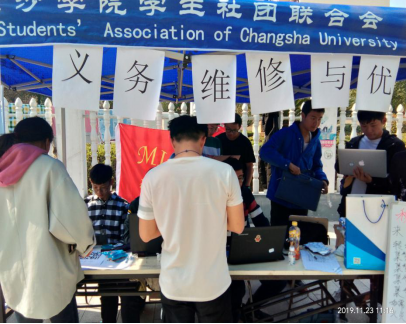 2019年11月22-23日,电信学院移动互联网协会在维智广场举行电脑、手机等电子产品软硬件义务维修活动。