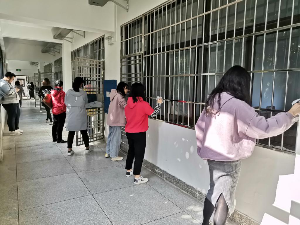 在中午时分,各党员老师由刘秋菊书记带头,亲自和外院学子一同打扫卫生。并且对打扫要求做出明确要求:门窗干净无灰尘、黑板及粉笔槽擦洗干净、桌椅摆放整齐、课桌抽屉中无垃圾残留并保持洁净、地面无垃圾并适当拖洗、打扫完后卫生工具摆放整齐。