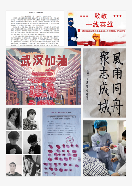 该支部成员积极响应上级号召,24名党员共捐赠1053元爱心款。党支部积极组织开展“笔歌墨舞,文见丹心”、“手绘希望,以待花开”书法及绘画等“抗疫”作品比赛,“镜头下送温暖,致敬最美逆行者”微视频征集赛和“春天里,我们风雨同行”家书作品征集等活动,积极引导广大青年学生居家向一线“抗疫”“战士”致敬。组织清明“云祭扫”活动,缅怀在“抗疫”中牺牲的“战斗英雄”,加强对党员、学生的思想引领,传承弘扬无私奉献的革命精神。该支部入党积极分子高捷同学在疫情期间表现突出,主动参加志愿服务达22天,时长174小时,得到了当地电视台报道,引起广泛关注。蓝山团县委将其评为“抗疫”优秀志愿者,并推荐为湖南省最美疫情防控志愿者候选人。支部也适时的考虑其入党的申请,现已推选其成为一名中共党员发展对象。“战疫”正能量得以传播,良好的舆论环境得以营造,众志成城“抗疫”的伟大力量不断凝聚。