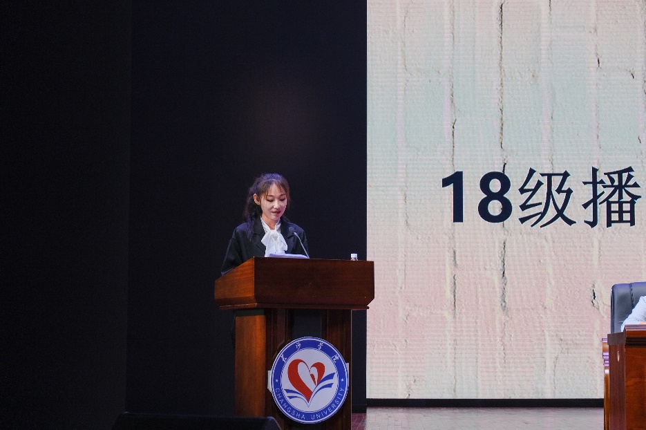 随后,老生代表18播音3班刘星汝同学从学习规划、课外活动、自身心态等方面向学弟学妹们分享了自己的大学经验和心得体会,提醒新生们“昨日已成回忆,明天还需努力”。紧接着,新生代表20汉语1班刘祉麟同学上台发表了自己对大学生活和人生道路的认识,以及“力学笃行”的决心。