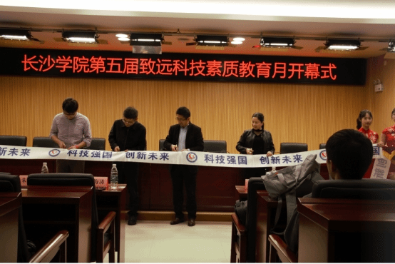 活动开始,副院长苏钢简要介绍了本届致远科技素质教育月活动。他指出致远科技素质教育月是我院校园文化建设的品牌活动之一,旨在为广大同学搭建了体验科技世界的平台,提供历练科技能力的机会。随后,学院党总支书记张海涛、院长朱培栋、电子信息工程系教研室主任龙英和DIGILENT科技大中华区总经理李甫成上台为本次开幕式剪彩,这也标志着长沙学院第五届致远科技素质教育月正式启动。
