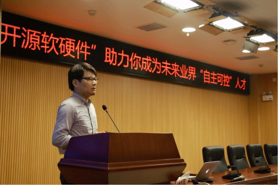 随后DIGILENT科技大中华区总经理兼教育部高等学校仪器类专业教学指导委员会协作委员李甫成开展了以“开源软硬件,助力你成为未来业界自主可控人才”为主题的讲座。近年来,随着国际单边主义和部分逆全球化势力的凸显,在科技行业中,出现了“卡脖子”与“自主可控”等热门的关键词。李甫成在讲座上详细地进行了分析相关情况,还介绍了信息技术业界最新动向及趋势,并列举了一些业界领先的开源技术平台应用案例,也让同学们深入了解开源FPGA板卡以及开源虚拟仪器的具体应用场景,极大地激发了广大同学学习科技知识的兴趣和热情。