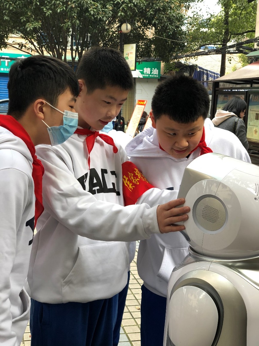 据悉,机器人由“小宝”由计数学院潘怡教授带队研发,她介绍道:“实验室+模式是学院人才培养改革的重要举措,把实验室的科研成果公益服务到社区基层,让大学生在动手锤炼中参与志愿服务,既培养专业技能,又涵养道德情操。”