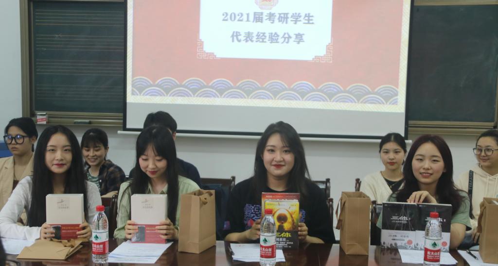 随后,四位2021届考研学生代表进行经验分享,他们现身说法,以过来人身份为在座同学传经送宝。“追光者”计划成员—2018级备战考研学生蒋伍龙结合自己的实际情况,讲述了他大学期间从想跨专业考研到为完成这个目标所付诸的努力。贺辉从大学生职业生涯规划的角度进行全面地阐述,为同学们今后的发展提供了一个更加明确的方向和思路。在自由问答环节,同学们积极提问,诉说自己的困惑,在场师生共同探讨,气氛热烈。刘利元对本次会议予以高度评价,刘静提出2022年保8进10的考研上岸目标数,鼓励同学们坚持不懈,努力用奋斗擦亮青春的底色。